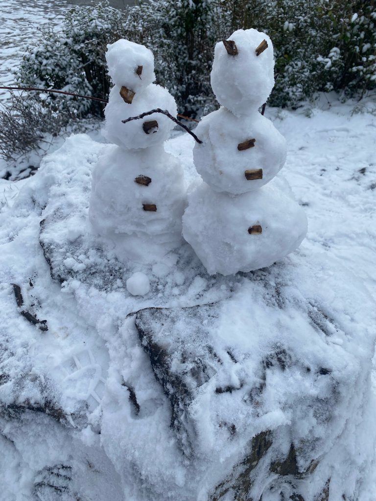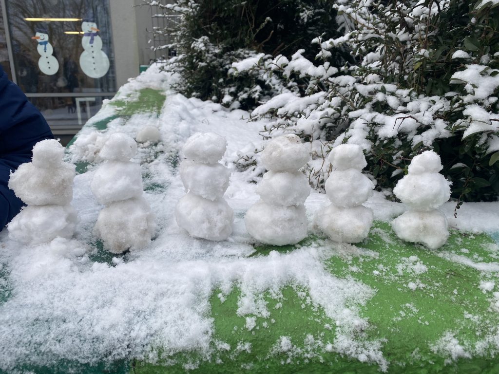 Nachdem der Schulhof gestern zu glatt war, um darauf spielen zu können, konnte heute der weiche Schnee genutzt werden, um viele kleine Schneemänner zu bauen. Die Kinder konnten so ihrer Kreativität in der Pause freien Lauf lassen! Seht selbst: